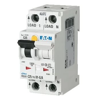 De aardlekautomaat uit de FRBdM serie van Eaton Moeller heeft 2 polen, waarvan er 1 beveiligd is (1p+n). De aardlekautomaat biedt in één oogopslag de statusindicatie foutstroom door middel van een kleurindicatie LED (rood/oranje/groen) op de frontschakelaar. Foutstroomwaarden zijn tevens opvraagbaar tijdens bedrijf. Inzicht in de oorzaak (overstroom of aardfout) in geval van afschakeling. Tevens beschermt deze aardlekautomaat aanvullend tegen specifieke, niet-afgevlakte vormen van gelijkstroom-foutstromen. De nominale spanning is 240V en de nominale stroom 16A. Verder heeft de aardlekautomaat een inbouwdiepte van 70mm en een uitschakelkarakteristiek B.