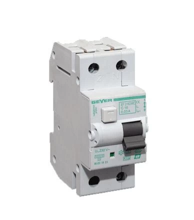 Deze Geyer aardlekschakelaar is kortsluitvast tot 10kA. Met behulp van de testknop kan het juist functioneren van het apparaat geverifieerd worden.