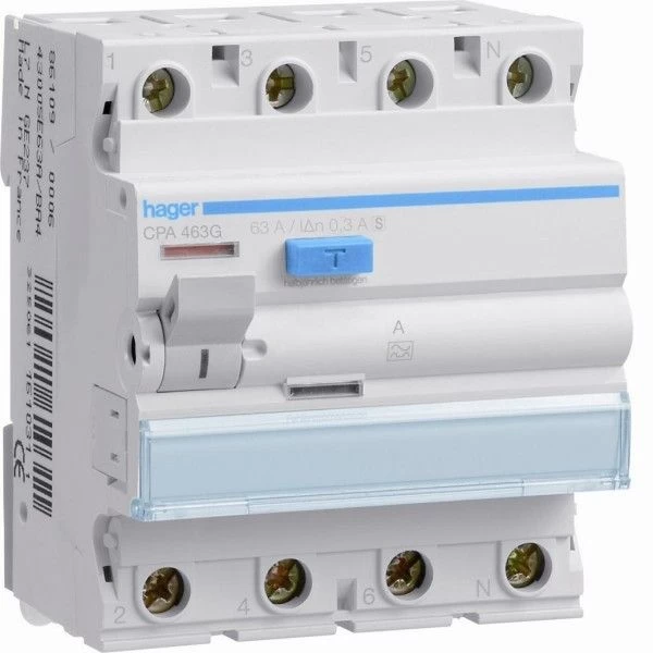 Kenmerken Hager Klasse A aardlekschakelaar CPA463G