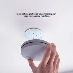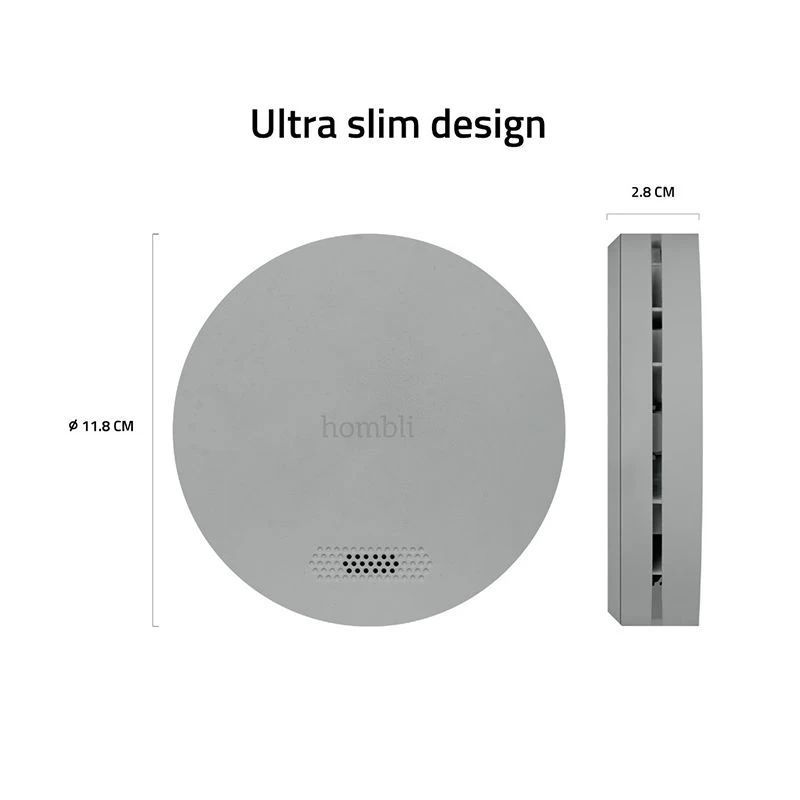 Dankzij het minimalistische en extra dunne design past deze grijze melder bij plafonds in allerlei stijlen. Het installeren van de Hombli rookmelder een fluitje van een cent. De meegeleverde magnetische bevestigingsplaat is eenvoudig op een plafond te bevestigen met de bijgeleverde 3M tape of met een enkele schroef. De magnetische bevestiging maakt regelmatig onderhoud, schoonmaken en het verwijderen van stof een stuk eenvoudiger, u heeft geen gereedschap nodig om de melder te verwijderen. De slimme rookdetector test wekelijks de ingebouwde lithiumbatterij en foto-elektrische sensor. In geval van een probleem ontvangt u een melding in de app. U kunt hier ook de huidige batterijstatus checken. Ook is de rookmelder voorzien van een test-/pauzefunctie, de gehele voorkant fungeert als een knop. U kunt onbeperkt Hombli rookmelders koppelen in de app, maar de slimme rookmelders kunnen niet aan elkaar gekoppeld worden. Verder heeft de slimme rookmelder de afmetingen ø x h: 118mm x 28mm.