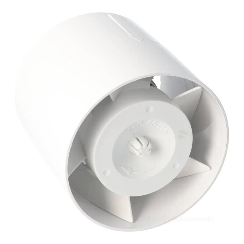 Montage van de buisventilator is eenvoudig. Schakel de netspanning uit, sluit de ventilator elektrisch aan en plaats deze in het kanaal. Schakel de netspanning weer aan. Let op de luchtstromingsrichting, zie de pijl op de zijkant van de ventilator! De aanzuig- en uitblaasopening dienen te allen tijde te worden afgewerkt met een rooster.