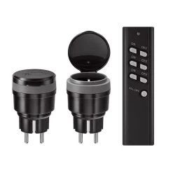 Deze AGC2-3500R draadloze schakelaarset van KlikAan KlikUit is een compacte stekkerset voor buiten om uw tuinverlichting en apparaten (bijvoorbeeld vijverpomp) op afstand te bedienen. Ideaal voor warme dagen wanneer u lekker in uw luie stoel wilt blijven liggen, of als u in de winter liever vanuit de warmte van uw huis uw kerstverlichting aan of uit wilt zetten. De stekkers hebben een nieuw, zeer compact ontwerp. Ook zijn de slimme stekkers voorzien van een nieuwe chip waardoor er geen problemen zijn met schakelen als de stekkers direct naast elkaar geplaatst worden. Er kan maximaal 3500W worden aangesloten op de slimme stekkers. De slimme stekkers zijn geschikt voor gloeilampen en 230V-halogeenlampen, (dimbare) LED lampen, (dimbare) spaarlampen, TL of PL lampen zonder externe starter, apparaten tot 3500W. Met een IP44 beschermingsgraad is de schakelaarset waterbestendig en weerstaat moeiteloos de regen en kou. De set bestaat uit 2 slimme stekkers, een afstandsbediening incl. knoopcelbatterij en een handleiding. Deze draadloze schakelaarset maakt gebruik van radiografische 433,92MHz technologie. Het signaal gaat door muren, ramen en deuren, met een bereik tot maar liefst 70 meter.