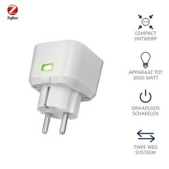 Met de compacte ZCC-3500 stopcontact schakelaar van KlikAan KlikUit kunt u op afstand elektrische apparaten en lampen in- en uitschakelen. Combineer de ZCC-3500 stopcontact schakelaar met de KlikAan KlikUit Smart Bridge en bedien via uw smartphone of tablet uw lamp of apparaat. Zo maakt u op eenvoudige wijze van niet-slimme lampen slimme lampen. De schakelaar heeft een compact design zodat deze naastgelegen stopcontacten niet hindert. U kunt lampen en apparaten tot 3500W gemakkelijk bedienen via de app op uw smartphone. In de KlikAan KlikUit app ziet u de status van uw lamp of apparaat. Zo weet u zeker dat bijvoorbeeld uw lamp echt uit staat, ook als u niet thuis bent. Wanneer u op vakantie bent kunt u ’s avonds uw verlichting aanzetten zodat het lijkt of u thuis bent. Grote kans dat inbrekers uw huis over zullen slaan. Maakt u gebruik van slimme beveiliging? Dan is deze stopcontact schakelaar een mooie aanvulling. Gebruik de schakelaar om bijvoorbeeld uw CV-ketel uit te schakelen als uw koolmonoxidemelder koolmonoxide detecteert of schakel een lamp in zodra het alarm van uw rookmelder gaat. Zo wordt slim beveiligen nog slimmer! Daarnaast kan de stekker ook handmatig worden bediend via de lichtgevende knop. Voor optimale beveiliging is de stekker voorzien van randaarde en kinderbeveiliging.