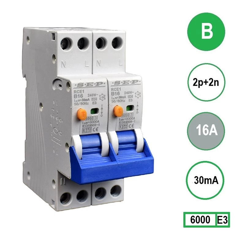 Deze RCE1-2N-B16 aardlekautomaat van SEP beschikt over 4 polen, waarvan er 4 beveiligd zijn (2p+2n). Daarnaast heeft de aardlekautomaat een nominale spanning van 230V, een nominale stroom van 16A en een uitschakelkarakteristiek B. De nominale foutstroom bedraagt 30mA en het kortsluit afschakelvermogen 6kA. Deze aardlekautomaat met overstroombeveiliging (RCBO) is voorzien van een uitmuntend beveiligingsniveau en is geschikt voor het aansluiten van een fornuisgroep (kookgroep). Potentieel gevaar van aardlekfouten en overstroomfouten wordt door deze aardlekautomaat de kop ingedrukt.